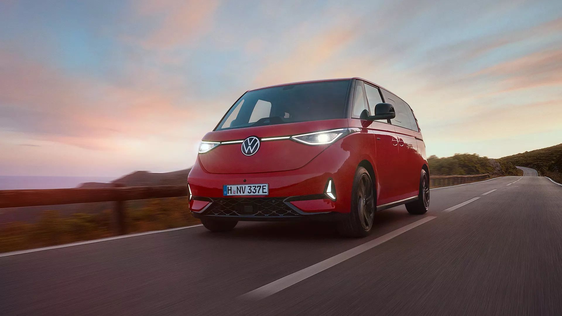Dynamik, die man sehen kann: Der ID. Buzz GTX ist das kraftvollste Modell der Baureihe und ist damit der stärkste, serienmässige VW Bus aller Zeiten. Ganze 340 PS beschleunigen den kirschroten und extrem agilen Elektro Bulli aus dem Stand in etwa 6,5 Sekunden auf 100 km/h.