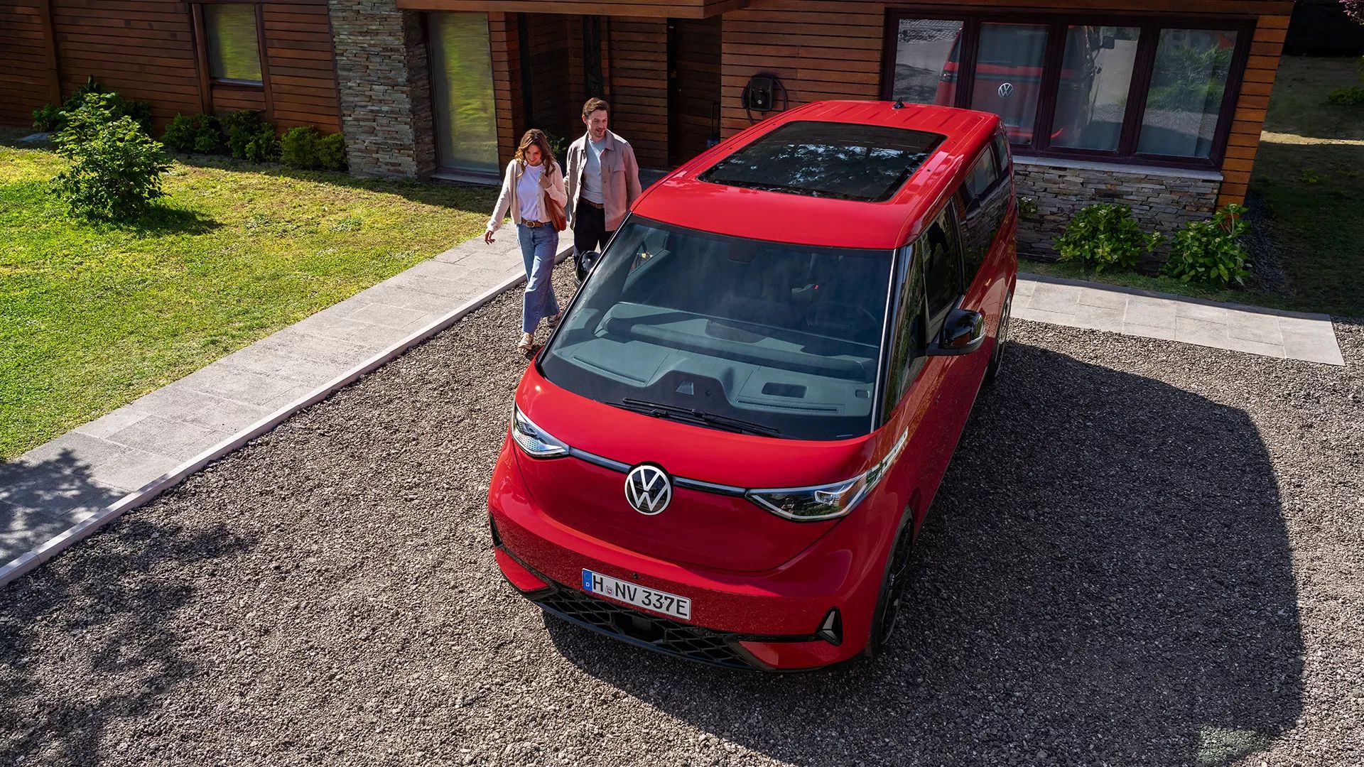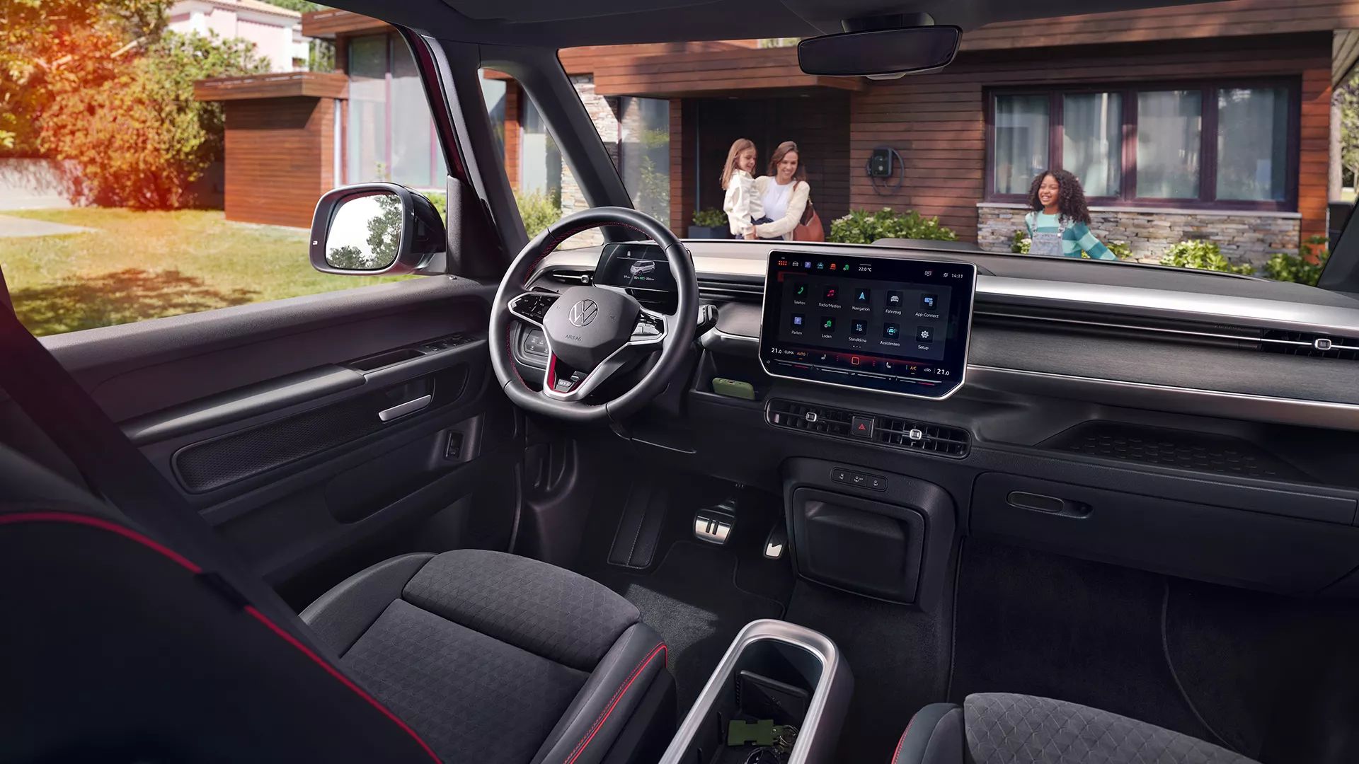 Bringt mehr Licht ins Leben: das optionale elektrische Panoramadach «Smart Glas» im ID. Buzz GTX sorgt für einen lichtdurchfluteten Innenraum und grosszügige Sicht nach aussen. Und weil es ein mehrschichtiges Glasdach mit schaltbarer Flüssigkristallfolie ist, wechselt es per Slider in der Dachkonsole auf Wunsch in den Privacy-Modus mit Licht- und Wärmeschutz. So hat man genau den Grad an Licht oder Verdunkelung, den man möchte – und muss sich auch um UV- und Infrarot-Schutz keine Gedanken mehr machen. Drei Zentimeter mehr Kopffreiheit gibt es zudem obendrauf. Der ID. Buzz GTX mit langem Radstand bringt so nicht nur mehr Draussen nach Drinnen, sondern verbessert auch das Raumgefühl spürbar.